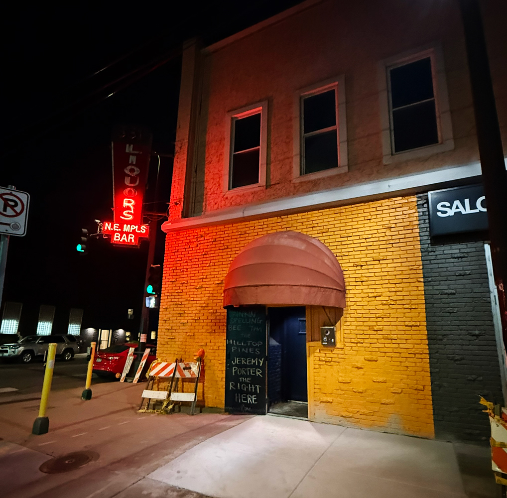 I met up with pals Luke (from The Right Here) and Erin at the Spring Street Bar, one their fav local joints for beers and a sandwich. I haven’t seen TRH dudes since I booked and promoted a show for them in Ypsi a couple years before the pandemic, and there was talk of that, and the band The Butts that none of could really figure out, but mostly about Bruce Springsteen, which they’re both pretty we’ll rooted in. We headed over to 331 Club for our 9:30 load-in and it brought back memories of playing the Bearded Lady Motorcycle Freakshow with The Tucos a couple times in the 2010s. I got caught up with pal Adam, also from TRH (formerly bass, now drums), and drummer for the third band last night, The Hilltop Pines. Also in attendance was my buddy and everything-Minneapolis-music-junkie/archivist/best-dude Jon, who I hadn’t seen in forever. It was great to get caught up and we both agreed I needed a haircut from his Hifi Hair and Records joint if I’d had the time.