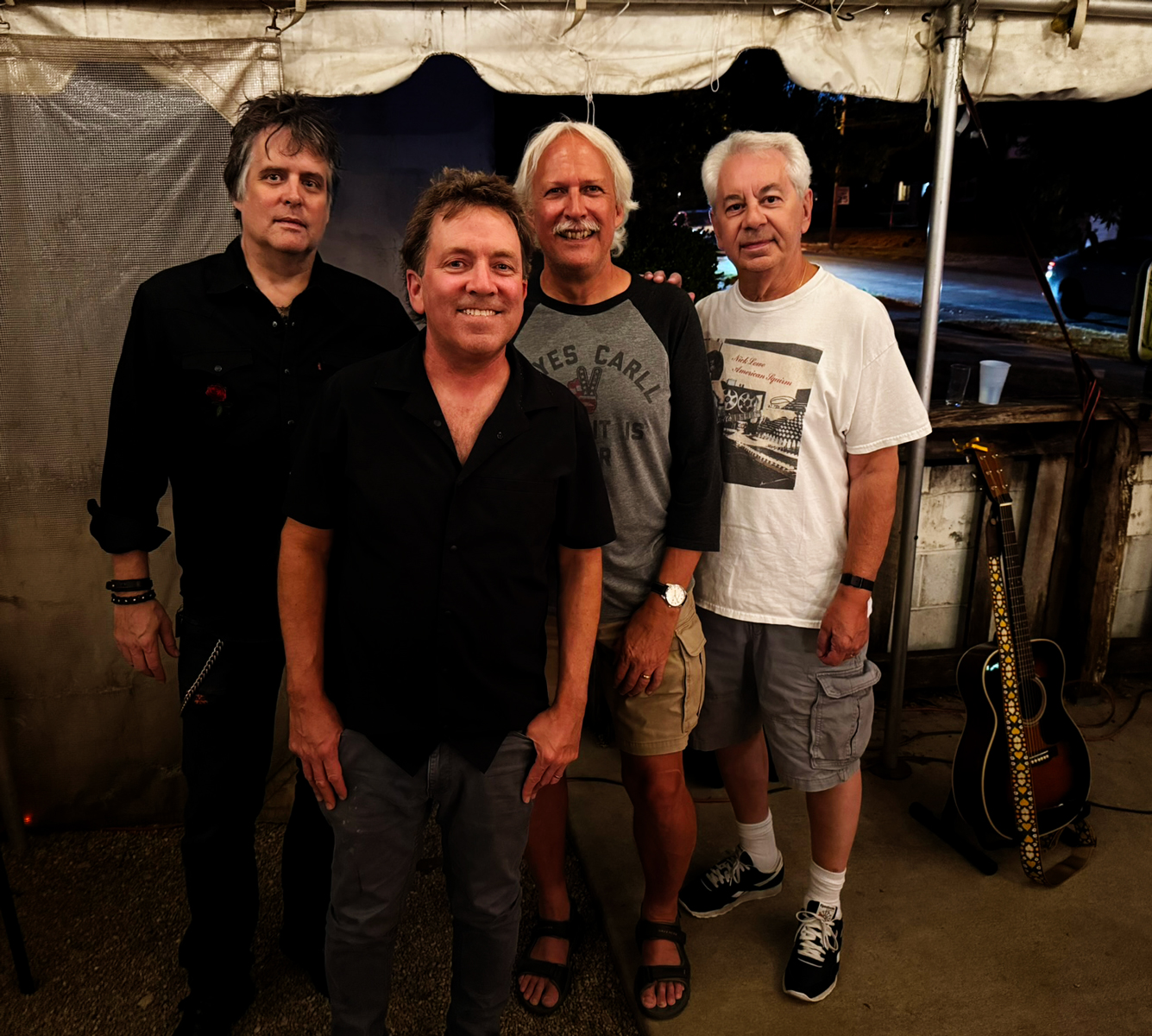 I unloaded and set up then parked my vehicle and walked over to the Woodlands Tavern where I got a couple awesome shrimp tacos and an IPA. I haven’t played the Woodland yet, surprisingly, but it looks like a room that would be a good fit or The Tucos or me solo, so hopefully one day. Back at The Ohio Taproom I met Ricky C., who is my Co-Editor-in-Chief at Pencil Storm. We’ve communicated together countless times, multiple times a week, for the last 7 years or so, but never met face to face, so I think it was pretty cool that we finally did. Ricki’s done it all and he has endless stories. Seeing Aerosmith on their first tour (“still wearing jeans and tee-shirts”) is up there with my favorites. Before long, Colin ( WATERSHED, League Bowlers, Pencil Storm) and Nick (Pencil Storm County Tippin’) showed up and it’s not often there’s more than 1 of us in one spot at the same time, so we made sure to grab a photo.