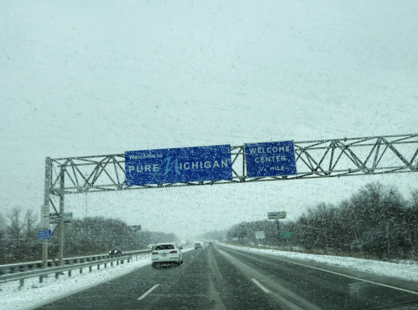 It was smooth sailing for about 20 minutes, but the further south I got, the worse the snow and ice got. About an hour in and I was at a standstill on the freeway, going nowhere for nearly an hour as a multi-vehicle accident ahead was being cleared. Without going into TMI, I was thanking the heavens that I still had the empty Taco Bell drink cup from Michigan on Friday on the count of the coffee that had worked its way south. Phew! Disaster averted! Finally, traffic started moving and I was on my way again.