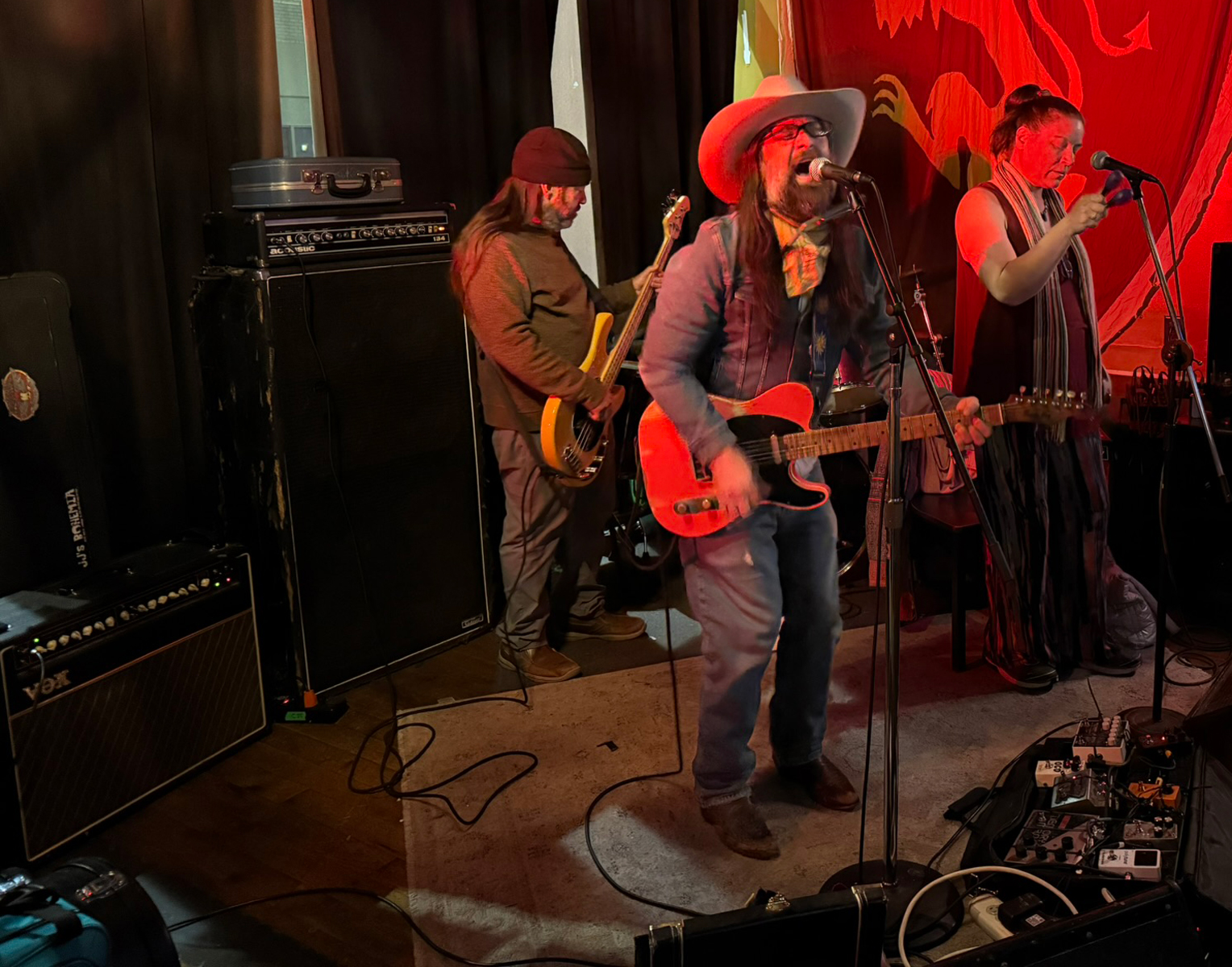 The Tucos played Cherry Street a couple years ago and Marty and I connected again pretty quickly. I met opener Vic Burgess, wearing a sweet Chewbacca coat, and then Jack Endelouz, who was also playing with his band. Vic and Dayna went on at 9 to a pretty good crowd and played a great set of awesome songs. Jack and his band killed it after them, with a great set of rowdy country-rock originals.