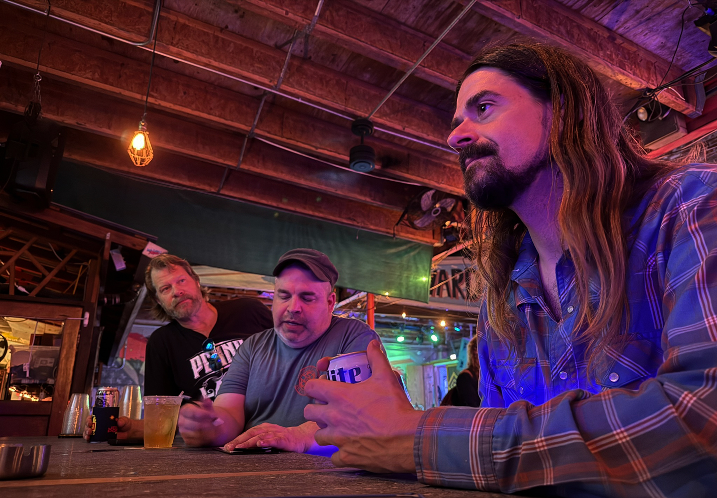 We had a late check-in at our AirBnB and an early show so we headed to the venue and loaded in, working around piles of luggage and mobile bedding that has morphed into an apocalyptic mess at this point. The Backyard at Boca Fiesta & Palomino is a sort of outdoor bar/venue that sits in a sort of alley between a pool hall and a pub. The stage is at the far end and there’s a bar under an awning on the side. It’s a cool space, and I can see why it’s revered by touring bands and locals. We chatted with the sound engineer David, and I met my contact Warren, who is a great guy, and we loaded in and sound-checked in short time.